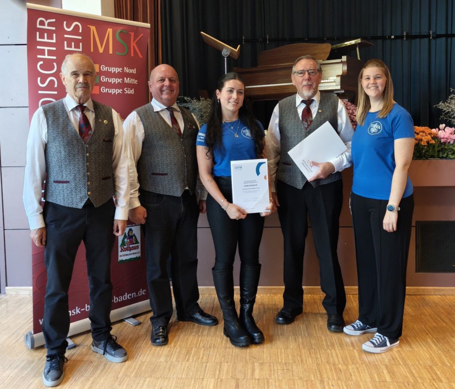 Es war für die 1. Vorsitzende, und Enkelin von Günter Prestenbach, Marina Steimer eine sehr große Ehre ihren Opa an der JHV 2024 für 65 Jahre aktives Singen zu